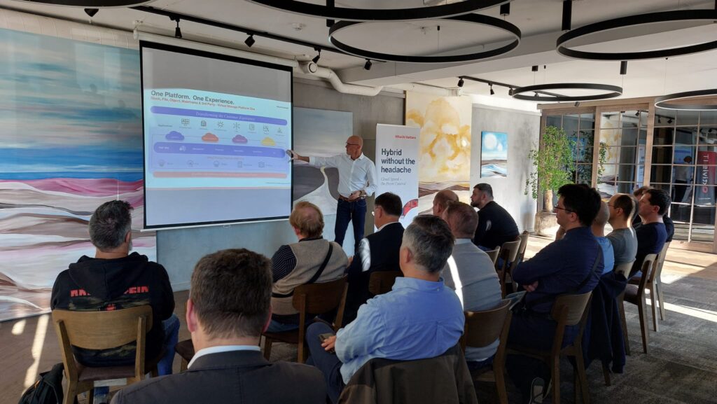 Renginio metu Hitachi Vantara atstovas Tony Franck pristatė „unbreakable storage“ sprendimų galimybes bei pademonstravo, kaip šios technologijos padeda užtikrinti duomenų atsparumą ir veiklos tęstinumą. Taip pat buvo aptartos VMware alternatyvos, aktualios organizacijoms, ieškančioms lankstesnių ir efektyvesnių infrastruktūros sprendimų.